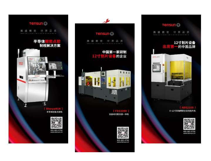 在先進封裝領域,騰盛精密也不甘于默默無名,緊跟時代發展精于布局自研工藝,在SIP先進封裝領域深耕產品設備的開發和制程應用,以媲美國際品牌的品質獲得眾多頭部企業的信賴。騰盛精密的點膠設備以絕對市場占有率,獲得國家級專精特新“小巨人”稱號;在精密切割設備上,騰盛精密始終保持著12寸國產劃片設備出貨第一的紀錄,同時騰盛精密也是中國第一家研制12寸劃片設備的企業。