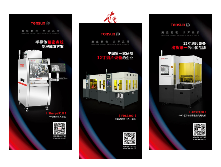 在半導體精密劃片領域,Tensun騰盛是國內最早研制12英寸劃片設備的企業。以公司典型晶圓劃片機產品——全自動切割系統ADS2100為例,可以滿足8~12寸材料的高精密切割加工,該機臺還可雙主軸同時切割,比單主軸切割產能提高85%以上,高低倍雙定位識別影像系統 ,適用多材料加工,并實時監測系統的氣壓、水壓、電流等數值,避免主軸損傷。Wafersaw晶圓切割設備目前大部分仍依賴于進口,但Tensun騰盛研發的設備已經在國內頭部客戶得到認可,小部分在購買和使用,未來有很大提升空間。