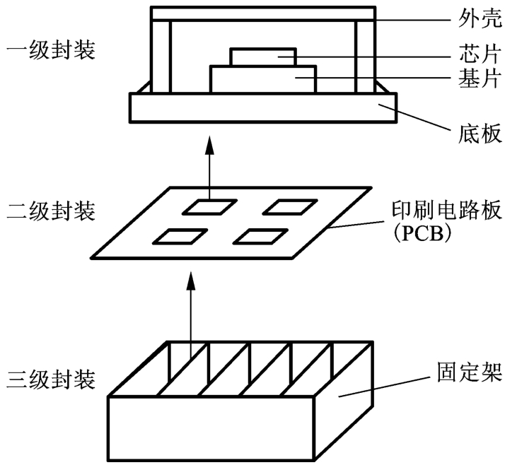 微電子封裝技術即半導體封裝技術,或先進集成電路封裝,主要起到電源供給、信息交流、散熱、芯片保護和機械支撐等作用,一般可分為4個主要層次: